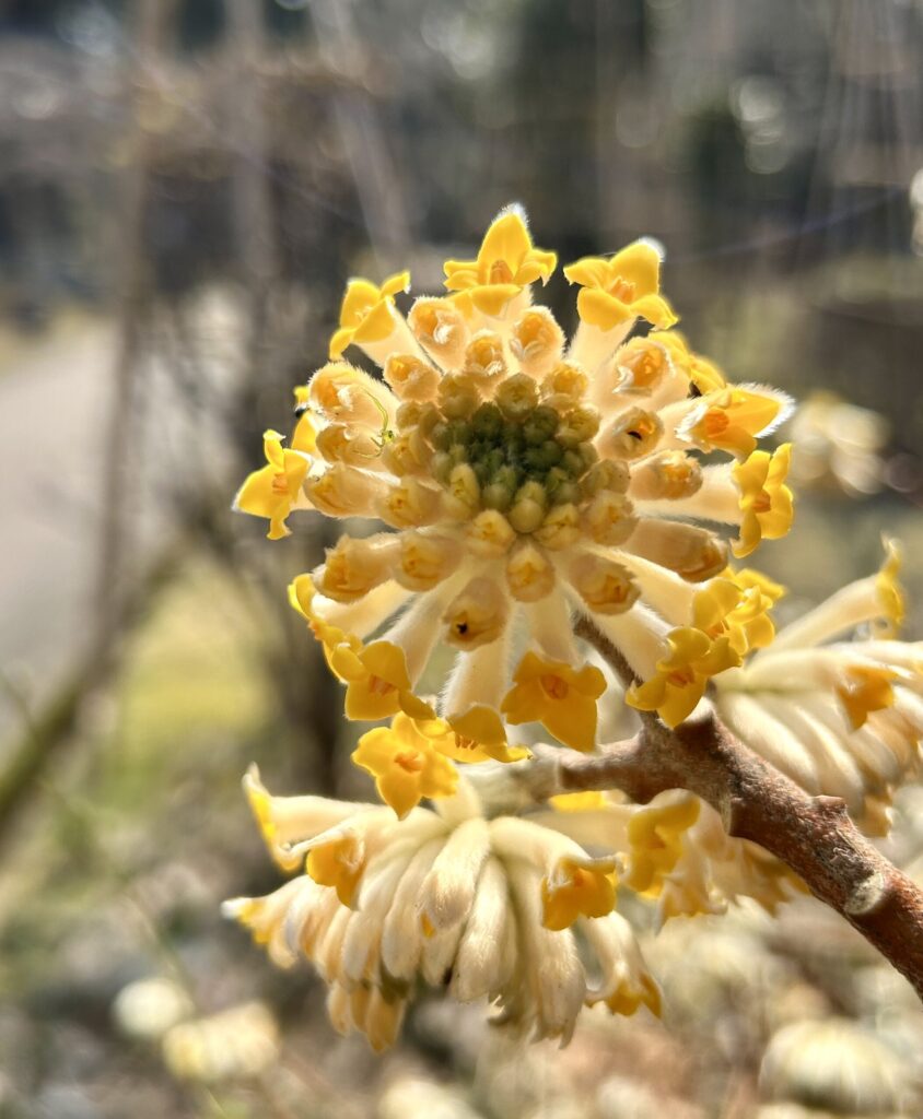 ミツマタが甘い香りを放って虫たちを呼んでいます