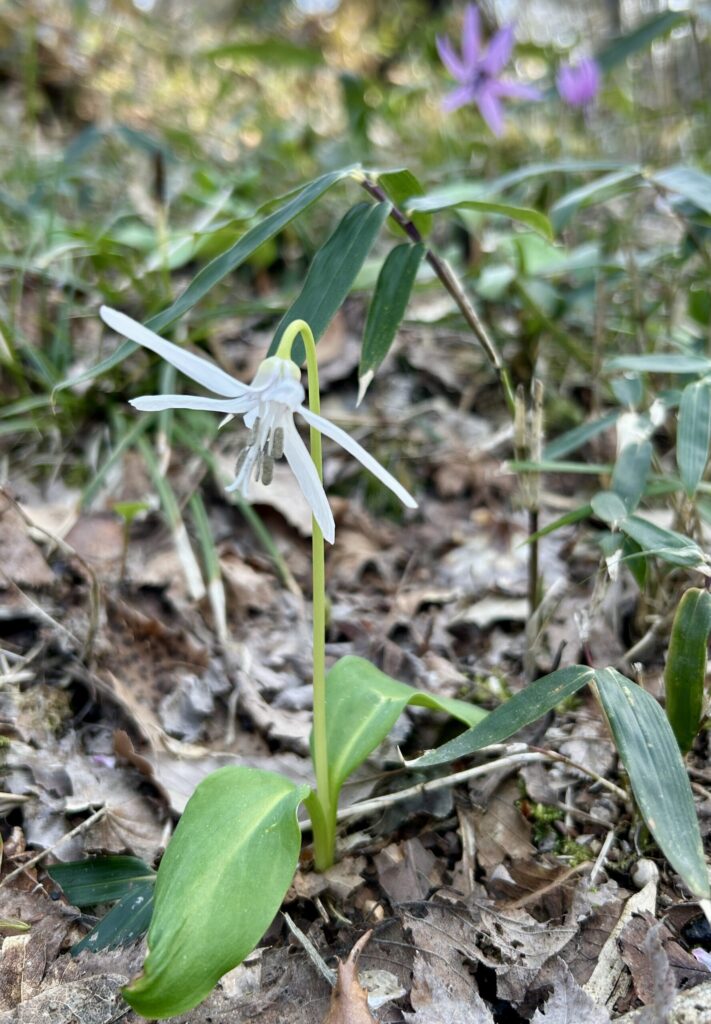 今年も樹間に一輪の白いカタクリの花を見つけました