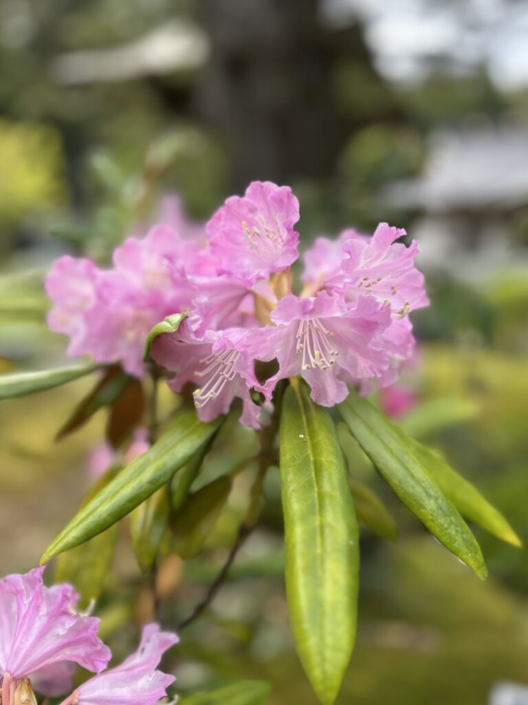 日本シャクナゲと緋色の山ツツジが色あざやかです